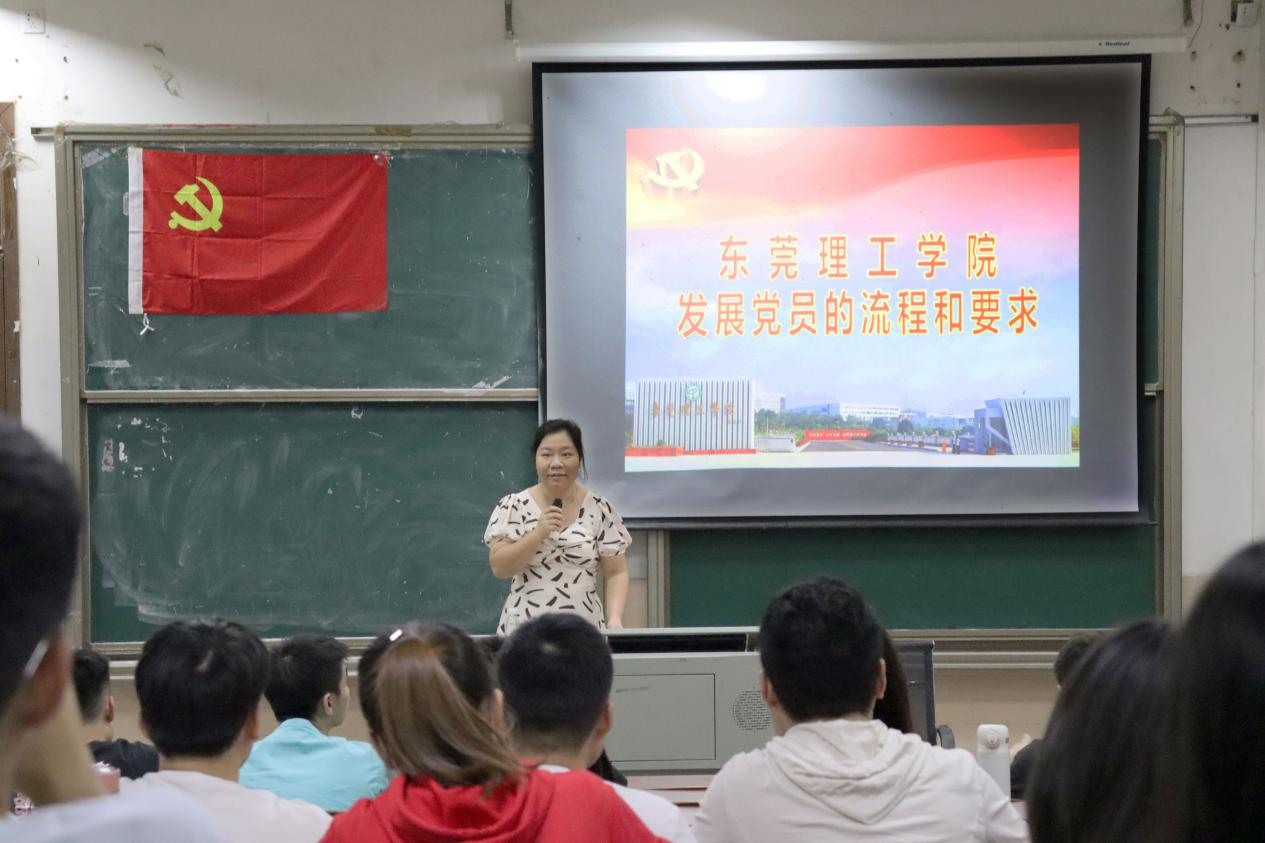 2021年11月4日,法律与社会工作学院(知识产权学院)分党校第三十三期入党培训班第三次党课于莞城校区的模拟法庭6#1开讲,sunbet申搏学生第一党支部书记钟丽华应邀主讲主题为“发展党员的流程和要求”的党课,全体33期入党积极分子到堂听讲。