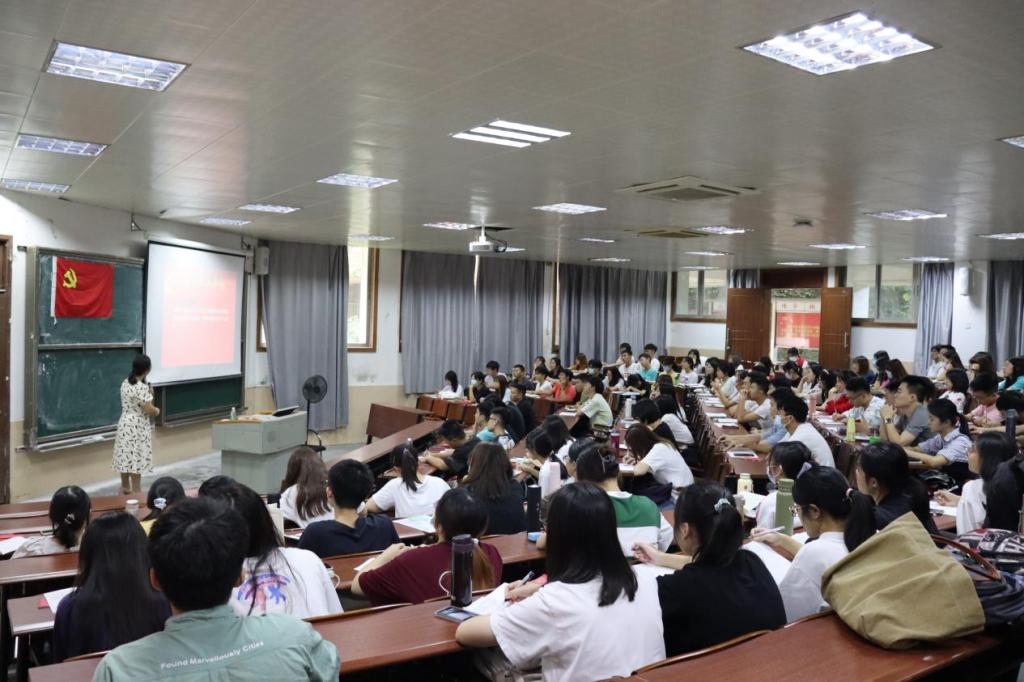 党课伊始,钟丽华老师按照入党流程的顺序,指出入党的第一步是提交入党申请书。紧接着,钟书记向同学们介绍了入党积极分子的培训和考察的相关内容,以入党积极分子的考察为重点,具体讲解了思想汇报的涵盖内容和要求,并以实际审核中入党积极分子出现的情况为例,使在场的同学们对入党的流程和具体要求有更加清晰的认知。然后,钟老师简要地向同学们介绍了发展对象的确定和考察制度,突出了入党的民主性和公正性。党课的最后,钟老师向入党积极分子讲述了发展对象择优成为预备党员以及预备党员入党的相关审批标准,告诫同学们要牢记党员标准,以党员标准为自己的行动准则。