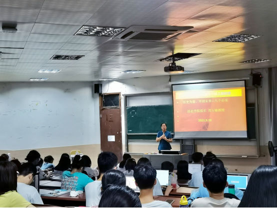 9月10日,sunbet申搏院长郑玉敏在莞城校区6#1为2020会计卓越1班、2020金融管理产学国际1班、2020国际商务产学国际1班、2020法学卓越1班等100多位同学上了一堂题为“奋斗百年路 启航新征程”的思政第一课,与同学们共同学习了习近平总书记在庆祝中国共产党成立100周年大会上的重要讲话精神。