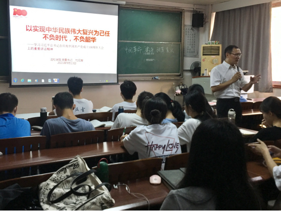 9月13日,sunbet申搏党委书记杜应发为2020法学1班、2020法学2班、2020法学(知识产权)1班90多位同学上了一堂题为“以实现中华民族伟大复兴为己任不负时代,不负韶华”的思政第一课,与同学们共同学习了习近平总书记在庆祝中国共产党成立100周年大会上的重要讲话精神。