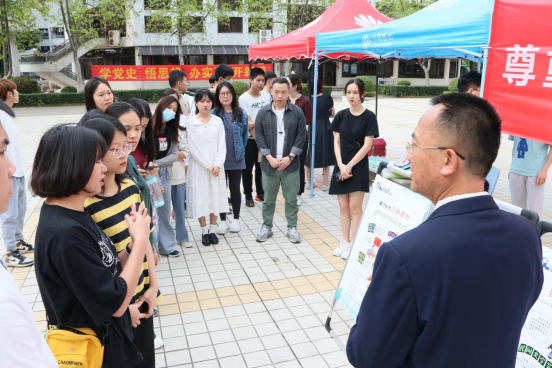 2021年4月中下旬,sunbet申搏教师党支部书记龚红兵同志带领莞城校区知识产权专业、松山湖校区专利代理师班的同学们分别在广场进行了主题为“全面加强知识产权保护,推动构建新发展格局”的知识产权宣传活动。