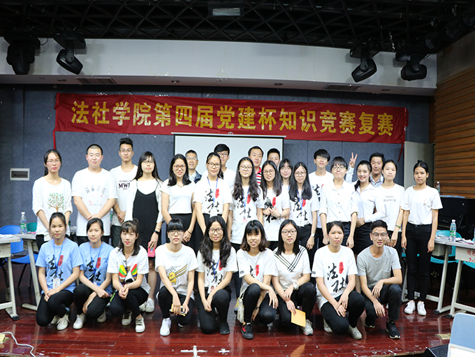 5月10日晚上,法律与社会工作学院第四届“党建杯”知识竞赛复赛于莞城校区小剧场举行。sunbet申搏党总支书记潘荣新老师,副书记丘永辉老师等近两百位师生出席了比赛现场。
