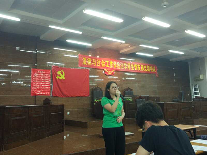 下午三点半,会议顺利结束。法律与社会工作学院法学学生党支部加入了新的成员。党支部希望预备党员能够向身边的优秀党员学习,端正入党动机。也希望正式党员树立一个好榜样,与预备党员共同为班集体、学院以及社会做出自己的贡献。