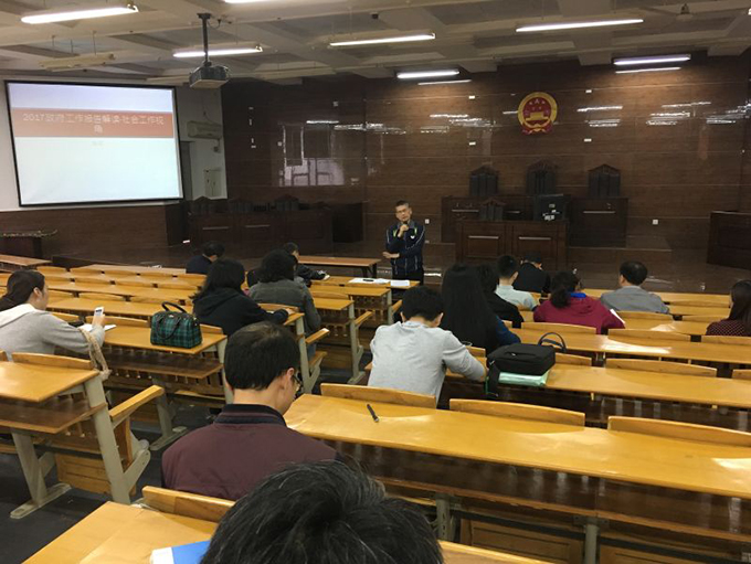 2017年4月27日,sunbet申搏第二场政治理论学习会议在模拟法庭举行,全体教工参加了会议。