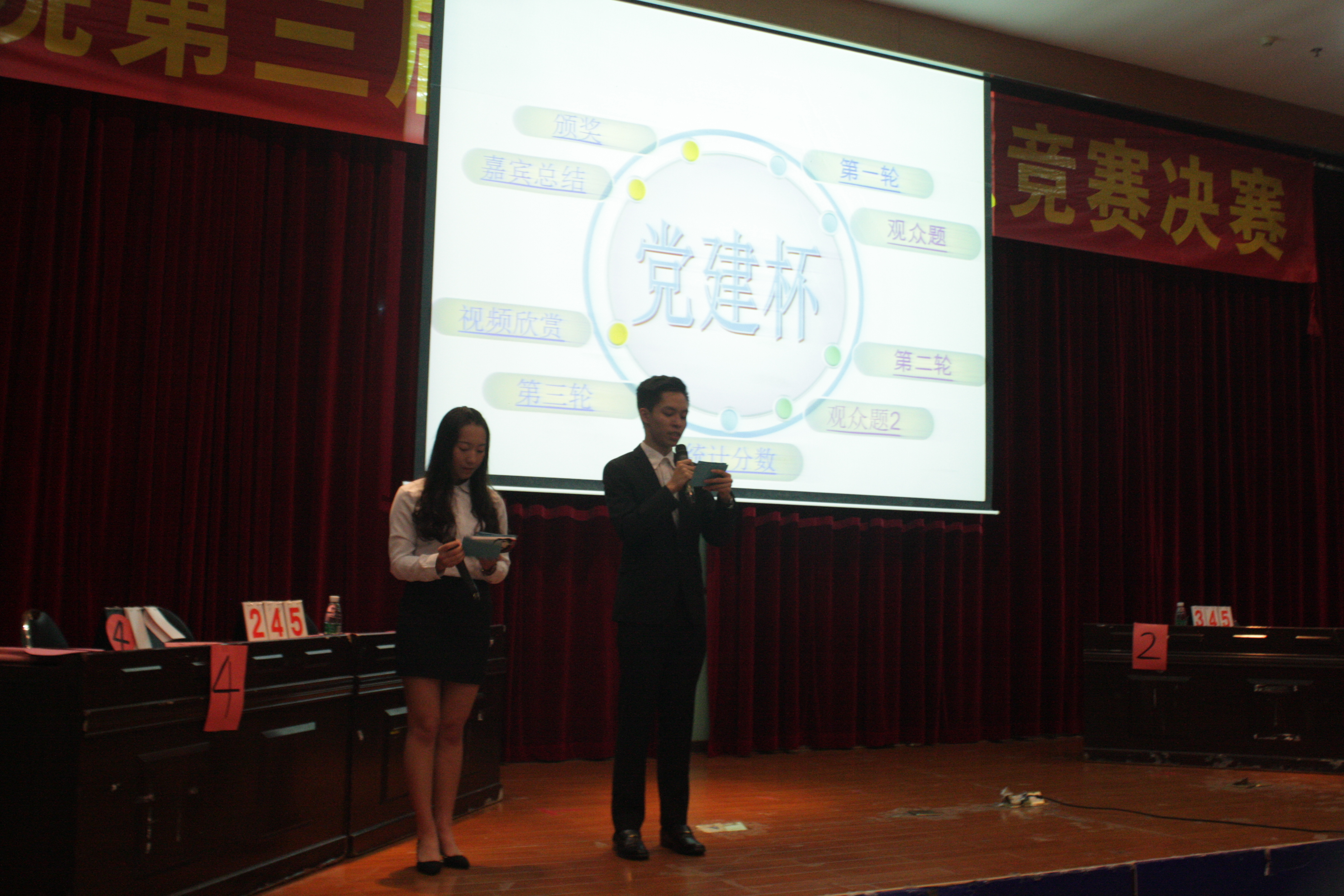 本次比赛采取了选手加智囊团的形式进行。首先,主持人宣读比赛流程与规则。接着是两轮的游戏环节。期间穿插有观众互动的环节。最后,对本次比赛的前三名颁发证书以及奖金。本次决赛,现场气氛十分活跃,同学们不仅感受到了欢乐,更是加深了对共产党的文化知识的了解。