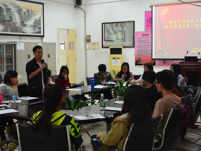 下午3点,党建办在经管楼211举行政法学院第三届学生党建办第一次全体大会。大会分为播放视频、人员自我介绍、新干事分享活动感想、干部发表讲话与颁奖共5环节进行。会上,新旧人员相互熟悉、相互分享,气氛欢乐融洽。下午4:15,全体大会圆满结束。接着,各部长带着新干事进行部门培训。