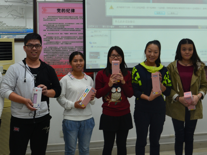 干事们领到奖品后喜笑颜开