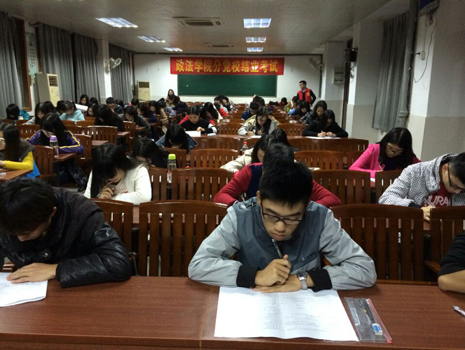 12月7日晚上7点45分,松山湖校区经管楼216与莞城校区1410课室同时开展了以检验院党课培训成果为目的的入党积极分子结业考试。莞城校区结业考试应到66人,实到64人,而松山湖校区结业考试应到40人,实到38人。