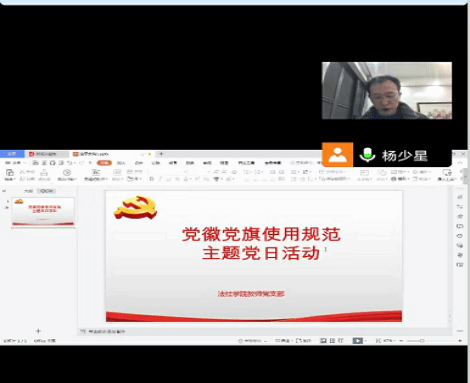 2022年12月16日(星期五)19:30-20:30,sunbet申搏教师党支部开展党徽党旗使用规范主题党日活动,组织支部党员教师深入学习《中国共产党党徽党旗条例》(以下简称《条例》),教育引导支部党员教师充分认识《条例》的重要意义,进一步规范党徽、党旗在日常工作使用中的政治性、严肃性。会议由党支部书记杨少星老师主持。