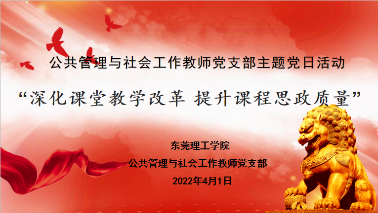 为全面贯彻落实习近平总书记关于教育重要论述和全国教育大会精神,公共管理与社会工作教师党支部根据学校党委指示和组织部工作部署,于4月1日以线上讨论方式开展了“深化课堂教学改革 提升课程思政质量”主题党日活动。讨论会会程约1小时,期间支部成员在支部书记的主持下,围绕课程思政建设各抒己见,感情真挚,形成了富有建设性的建议和行动意愿。各同志表示在防疫限行之际开展连线会议,抒发了情感意愿,收获感强、满意度高,令人欣慰。