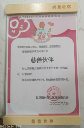 2022年6月24日上午,sunbet申搏副院长朱晓红、谢媚媚老师、杨瀚博老师以及“青鸢计划”志愿服务队的学生十多人前往石龙镇兴龙社区参加“五社联动齐赋能,一起慈善创美好”——“1773”兴龙慈善社区项目启动仪式暨社区夏日送清凉活动。此次活动是sunbet申搏2022年开展的“青鸢计划”劳动教育品牌活动的重要内容之一。