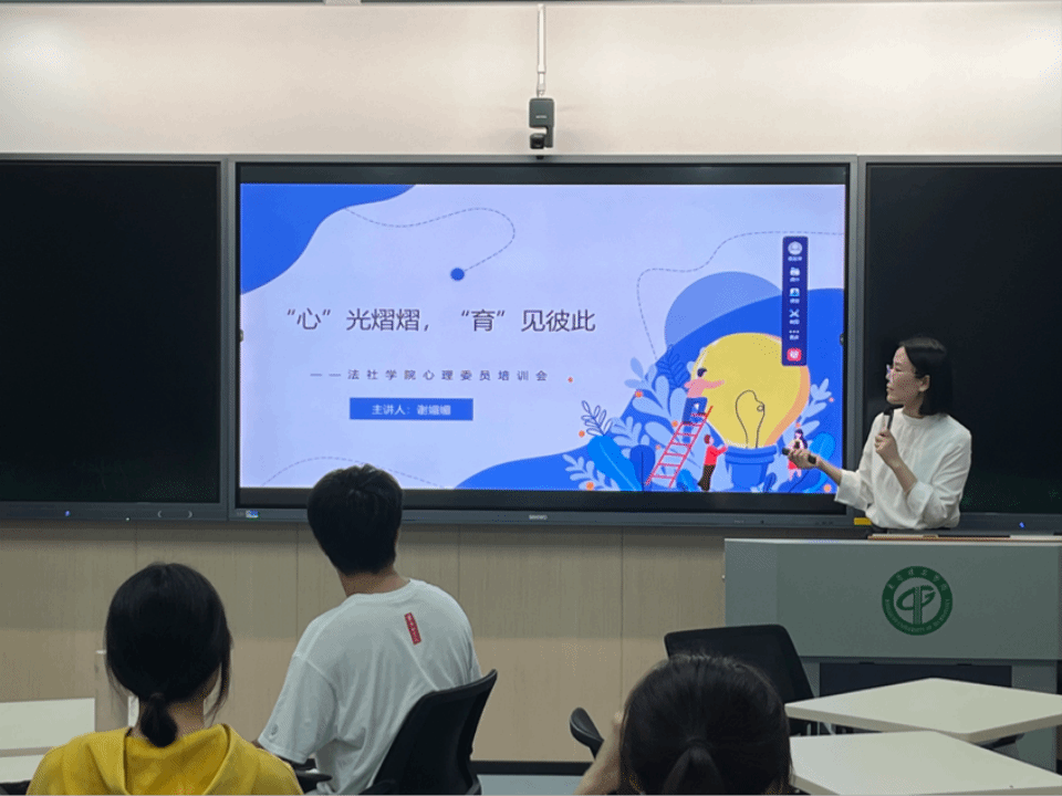 谢老师为大家科普心理健康知识,讲述了正常心理和异常心理的区分,让心理委员们较为全面地了解可能引发心理危机的因素。