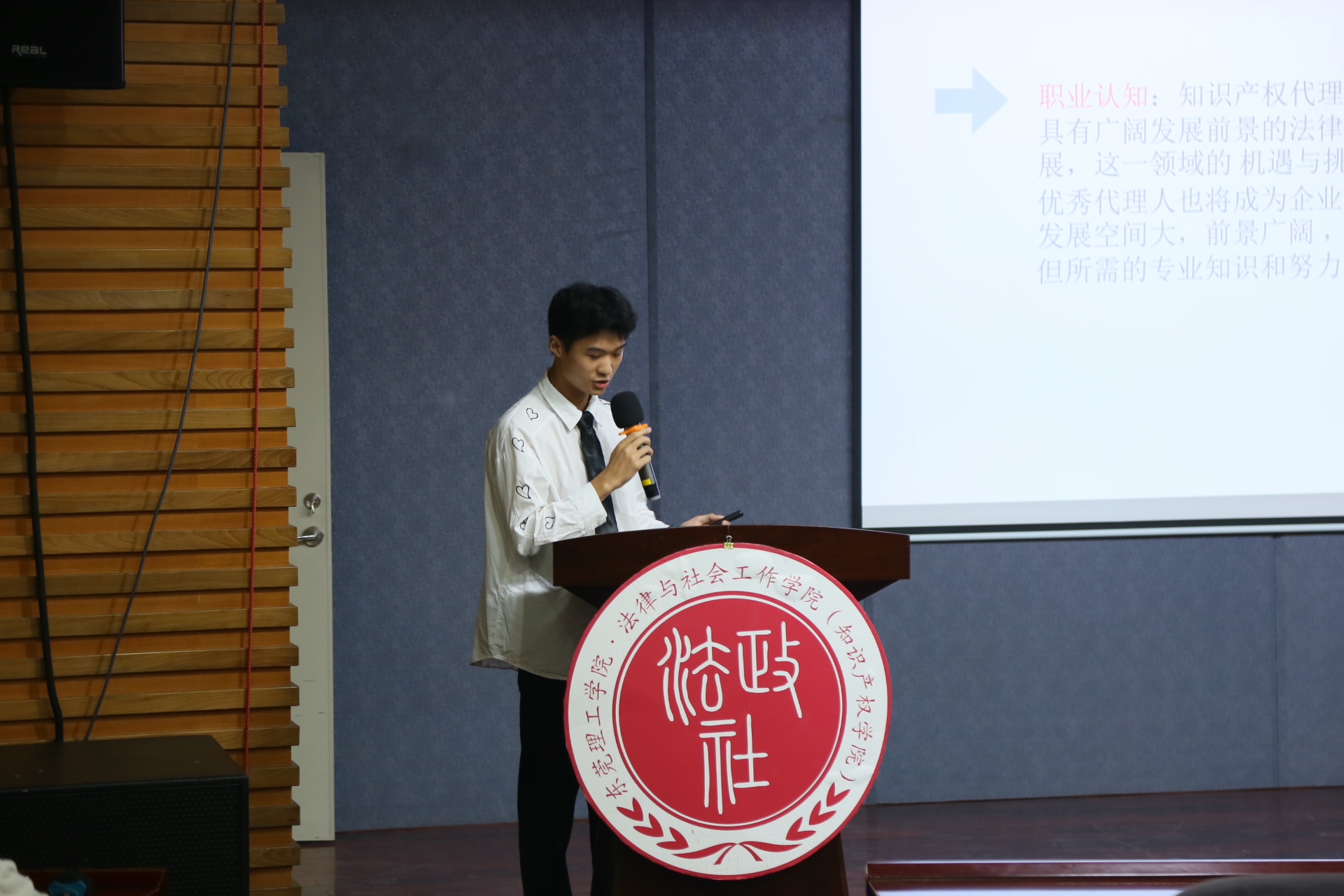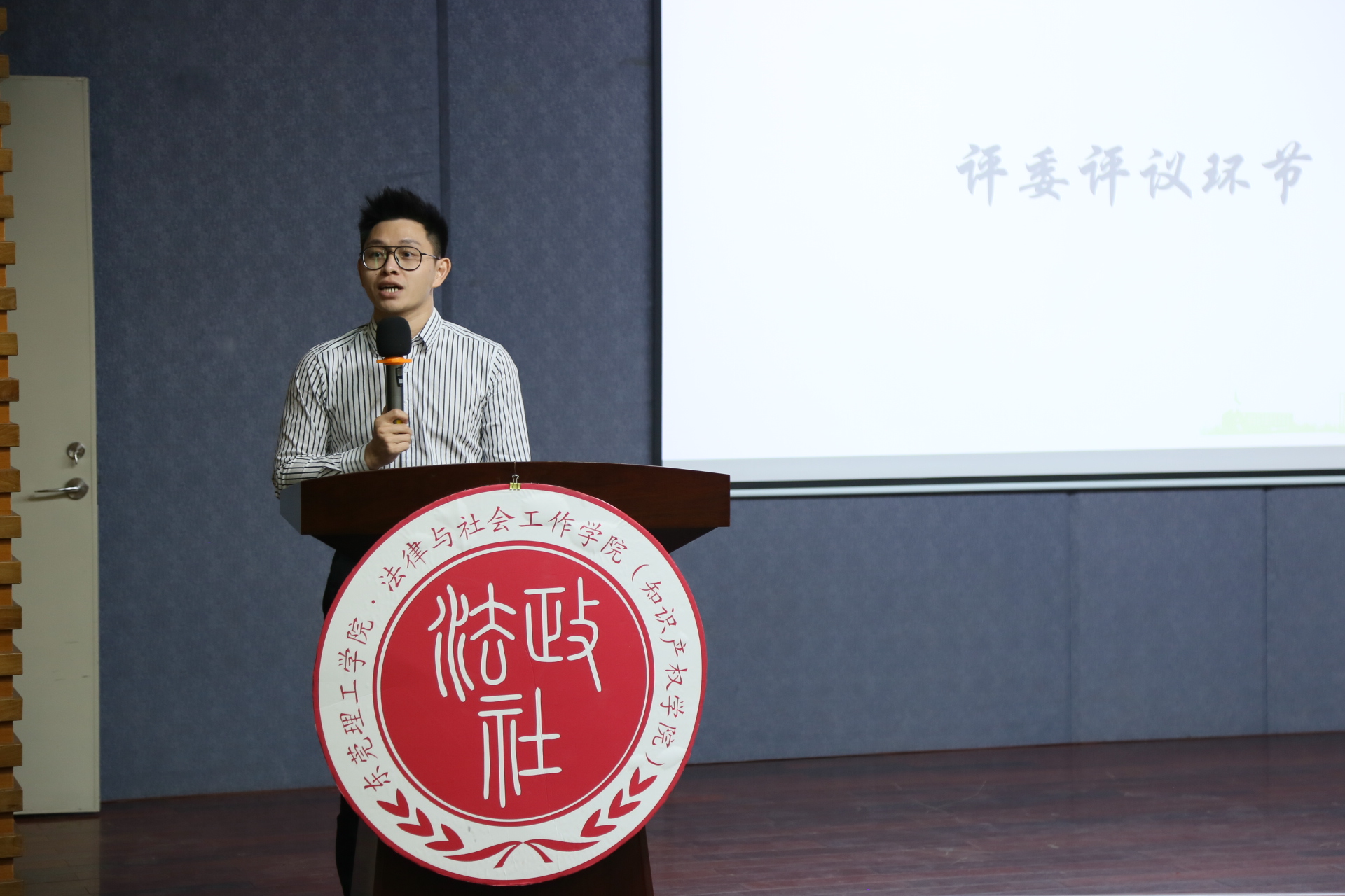 陈钧浩先生作为评委代表对本次大赛进行了点评,他以过来人的身份从自身的职业规划、个人经历有关方面向大家传授经验。陈先生指出,目标清晰的大学职业规划是大学生步入社会的重要前提,职业是人生必走的一个阶段,同学们应该主动向行业内从业者了解职业环境,学习职业技能,不断提高实践能力。最后,陈先生将“大而落地”四个字送给在场的法社学子们,鼓励大家在大学期间大胆尝试、勇于探索、积极实践,并衷心祝愿选手们在职业规划大赛取得理想成绩。