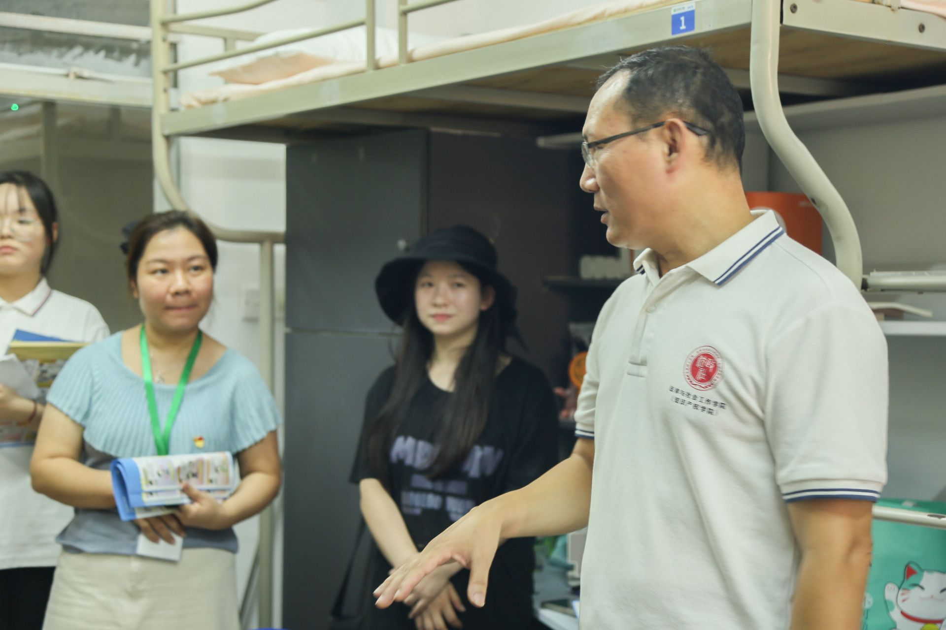 傍晚时分,学院领导、辅导员、班主任和助班们一同来到社区,走进宿舍,与新生面对面交流,对新生的到来表示热烈欢迎,关心新生对新环境的适应情况,倾听新生对大学生涯的规划等。