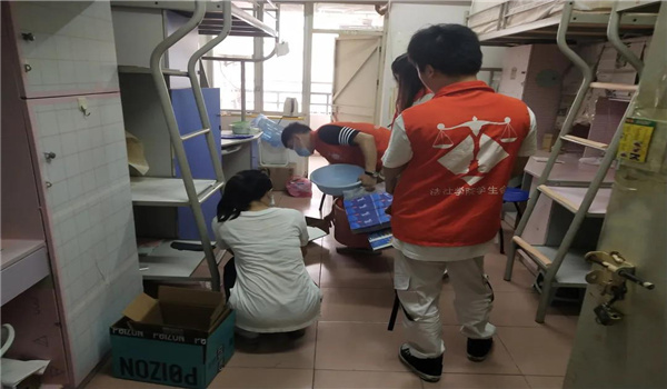 当下正是疫情防控关键阶段,志愿者们不顾炎炎烈日,冒着酷暑,戴着口罩,井然有序地进行宿舍搬离的工作。