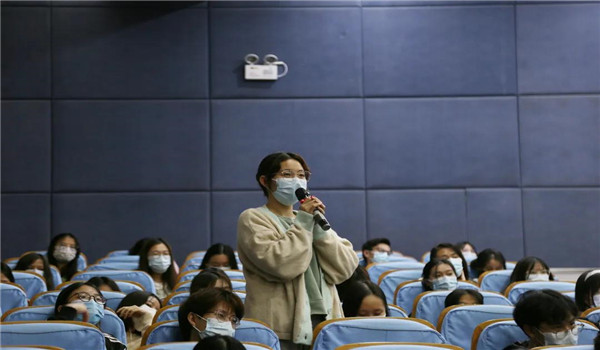 比赛的第三个环节是心理盲盒,四支队伍分别抽取一个题目,需对其进行即兴讲解。选手们充分发挥自己的聪明才智,创新表现形式,针对抽取的话题进行分析和延伸,讲解得绘声绘色,并对其提出有效的解决方法。
