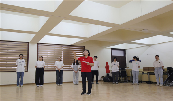 活动一,雨点变奏曲。“乌云密布,一道闪电划过,雷声开始轰隆了,又一道闪电,又一阵雷声,小雨噼里啪啦地下来了,行人慌忙躲避;很快地,小雨变成了中雨,中雨变成了大雨。”主持人引导大家思考如何将发出的声音变成有节奏的音律,成员将这些声音和下雨声联系起来,譬如:轮跺双脚—— “雷声”;手指互相敲击——“小雨”;巴掌轮拍大腿——“中雨”;大力鼓掌—— “大雨”;鼓掌加跺脚—— “暴雨”。整个过程,随着主持人不断变化的指令与手势, 学员发出的声音不断变化,同时通过双手的升降来控制音量。