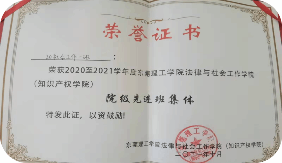 2020社会工作1班是一个团结友爱,互助同心的大家庭。从军训时的相遇到学习生活中的相识相知再到文体竞赛中的相互鼓励,我们畅想大学梦想,共同成长。在班主任黄俊辉老师的悉心教导和团组织的有力引领下,还获得了2020-2021学年度sunbet申搏,sunbet申搏(知识产权学院)“院级先进班集体”荣誉称号。追求卓越,开拓进取是我们集体的代名词。我们总结成长的经验,再接再厉,在未来我们会以更高的标准严格要求自己,争取更大的进步!