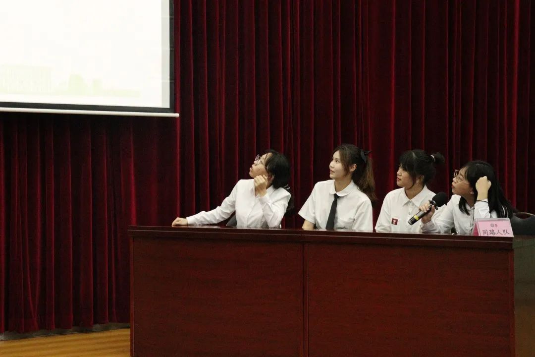 比赛伊始,三支参赛队伍依次上台进行自我介绍,他们分别是:啊对对对队、同路人队、街道办事处队。紧接着,三支队伍派出代表分别进行心理话题微电影演讲展示。各队代表播放本队的心理话题影片,动情地讲述着心理故事,借此希望同学们洞悉心理问题成因,积极找寻化解途径。接下来是心理知识竞答环节。主持人念完题目后,选手们需在限定时间内作答。选手们作答迅速、正确率高,展现了他们丰富的心理知识储备和良好的比赛状态。