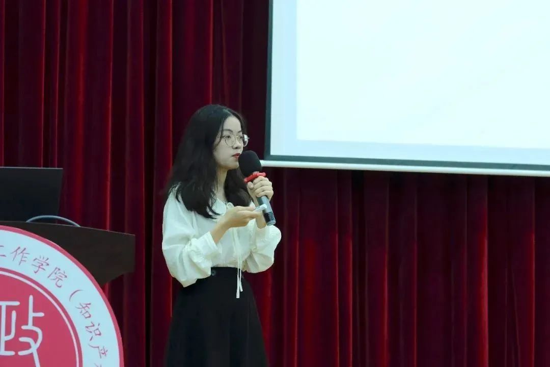 会议伊始,黄海娜老师发言。黄海娜老师对奖学金获得者代表们的精心准备分享内容和法社团学认真筹备此次活动表示肯定,提到新时代的新青年面对着全新的机遇和挑战,要砥砺前行,展现新作为。同时,她对同学们表达殷切期望,希望同学们以“榜样为镜”,向“榜样看齐”,培养良好的学习态度,营造良好的校园学习氛围,不负韶华,只争朝夕,努力成为堪当民族复兴大任的时代新人。