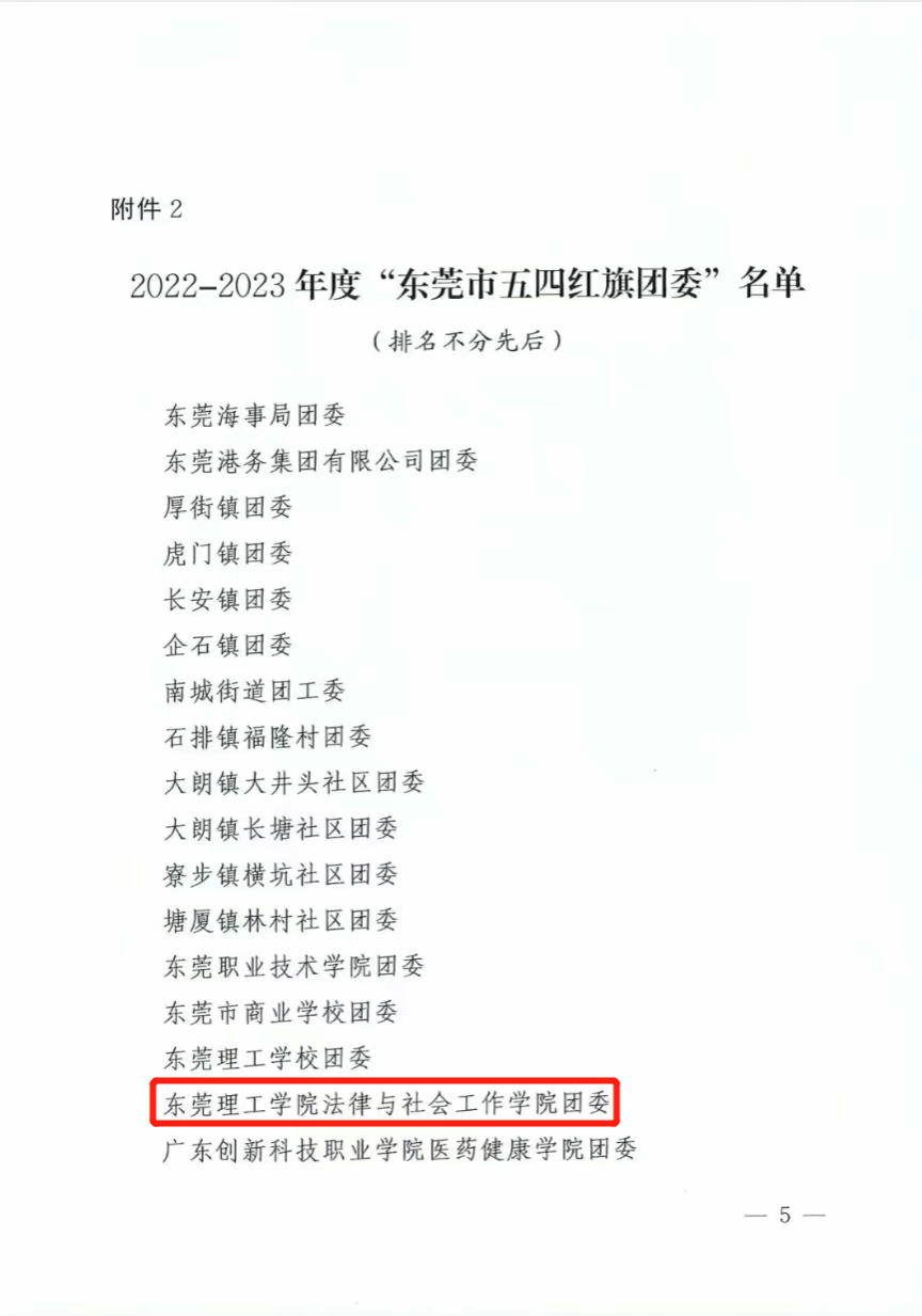 2022—2023年度“东莞市五四红旗团委”