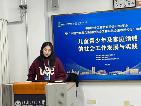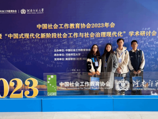 2023年12月8日—10日,中国社会工作教育协会2023年会暨“中国式现代化新阶段社会工作与社会治理现代化”学术研讨会在河南新乡成功举办。sunbet申搏2023级社会工作专业硕士研究生张可、卢慧娴、杨顺、2021级本科生袁铸峰获邀参会。