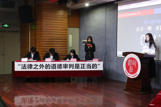 辩论正式开始。正方认为,道德审判是正当而且必须的,道德审判可以作为法律审判的补充,有助于维护社会公正和道德秩序;而反方则坚持认为,道德审判不具有正当性,道德审判会导致社会秩序的混乱和个体权利受到侵犯。双方辩手思维敏捷、语言流畅,理论与实例相结合,充分展示了他们的知识储备和论辩能力。