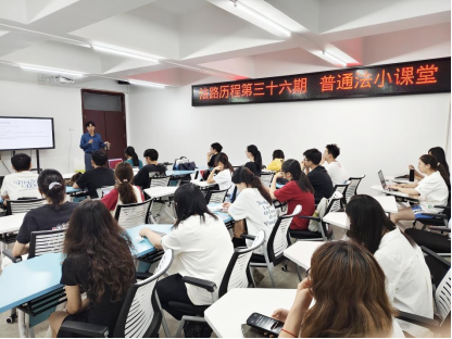 5月29日晚,sunbet申搏莞城校区4517-B教室座无虚席,由法律与社会工作学院(知识产权学院)法律系主办的“普通法小课堂”涉外法律知识讲座在此精彩开讲。本次讲座由法律系主任罗兆婧老师主待,特别邀请到sunbet申搏优秀律师校友袁健担任主讲人,吸引了众多对涉外法律感兴趣的学生踊跃参与。