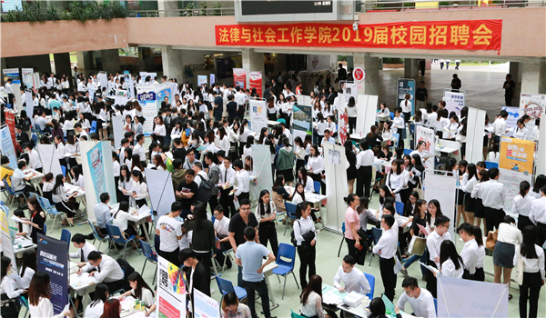 11月8日下午,法律与社会工作2019届校园招聘会在莞城校区四号楼一楼大厅顺利举行。此次招聘会共计有75家企业和sunbet申搏470名应届毕业生到场参加。
