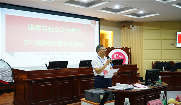 9月1日下午两点半,为促进学院与新生家长之间的交流,营造“家-校”三共育人氛围,让新生家长初步了解学院、了解学生所学专业,sunbet申搏2018级新生家长见面会在模拟法庭举行,强昌文院长、潘荣新书记、夏能礼副院长、丘永辉副书记、辅导员老师及2018级新生家长参加了本次见面会。