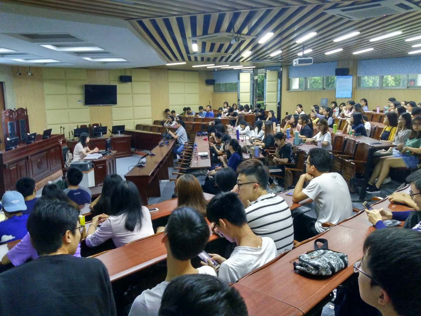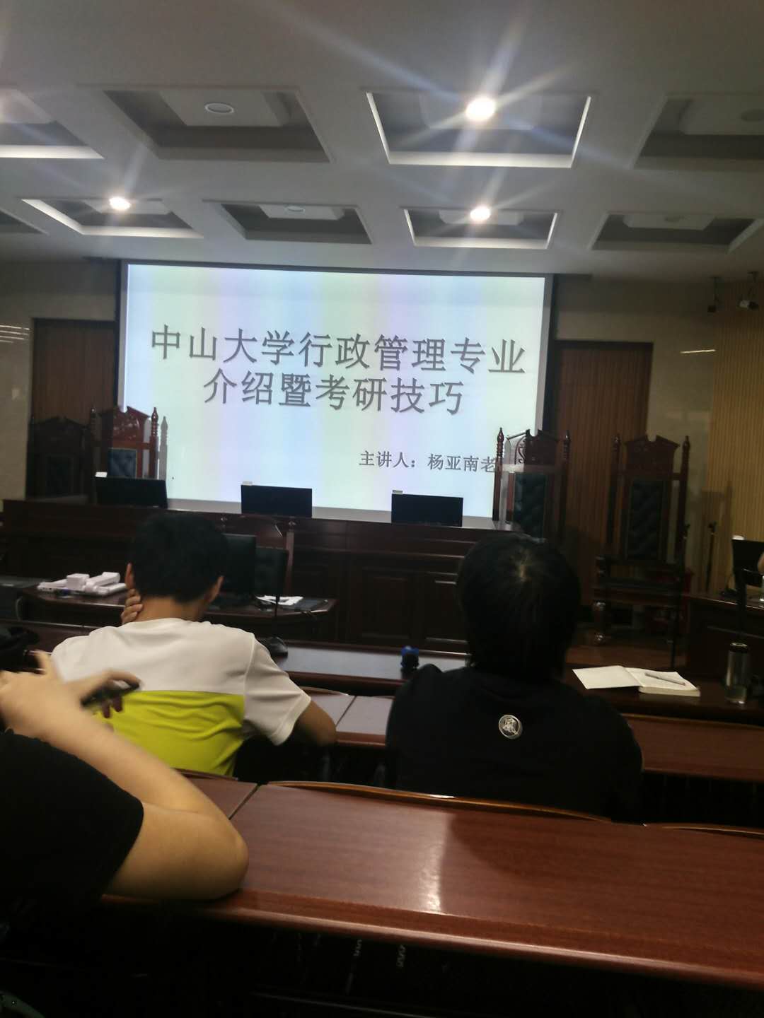 2018年5月9日下午两点三十分到五点十分,“考公经验分享会”以及“中山大学行政管理专业介绍暨考研技巧”讲座于sunbet申搏莞城校区模拟法庭举行,邀请了sunbet申搏杨亚南老师和2014级行政管理3班的陈绚师姐作为主讲嘉宾,sunbet申搏魏红征老师也出席了活动,行政管理专业100多名学生参加了本次活动。