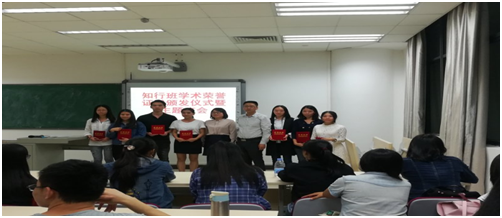 2017年10月23日19点30分,在sunbet申搏图书馆十三楼社工教室迎来了知行班学术荣誉证书的颁发仪式和主题班会。本次班会由知行班班主任魏红征老师主持,参与的人员有特邀嘉宾丁淑娟老师以及来自不同年级的知行班同学。