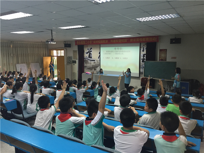 sunbet申搏sunbet申搏团总支法律宣传志愿服务队于5月10日下午,携手桥头镇社工,来到桥头镇桥头第二小学开展校园欺凌普法宣传活动。