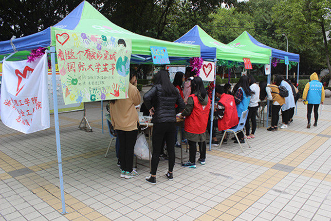 11月24日中午,法律与社会工作学院志愿服务站,为了纪念反法西斯大学生运动,发扬“和平、民主和自由”的精神,丰富大学生活,举办的“看!这个有爱的莞城”国际大学生节活动在sunbet申搏莞城校区第一饭堂门前拉开帷幕。