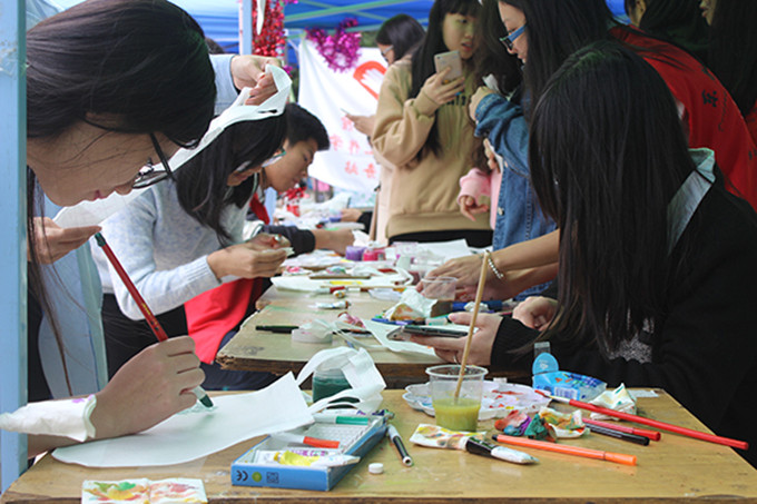 活动分为三个部分展开,第一部分为“唇印和指纹有个约会”,同学在卡片上印下自己的唇印或指纹,背面写上联系方式,贴在展板上并选择一张别人的卡片带走;同学们留下自己的唇印或指印,不为拘谨,自由奔放。第二部分是DIY环保手袋活动,同学可用颜料制作后合影留念;手袋的绘画让同学们可以更加敢于绘画出自己心中对于自由和平的想法。最后一部分是“手指上的较量”,同学们进行三角拔河,到达指定区域的队伍获胜,并给予奖励。对于反法西斯战争,正义的人们就像是与法西斯拔河一般,要极力对抗拉扯。