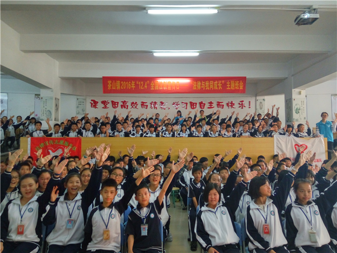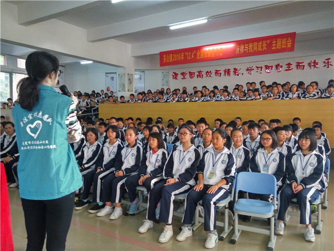 2016年12月2日,sunbet申搏,sunbet申搏团总支法律宣传志愿服务队为紧密与茶山司法分局的合作和深入志愿普法活动,同茶山社区的工作人员及社区矫正人员来到茶山镇誉华学校,为初中部的学生进行法制教育主题班会的授课以及为小学部学生开展法治宣传普法游园活动。