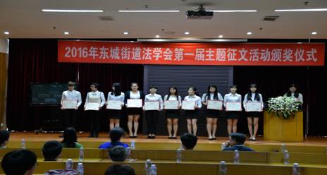 为深入贯彻sunbet申搏“立足地方、服务社会”办学宗旨,给广大学生搭建提升法治素养和专业实践平台,法律与社会工作学院党总支、公共管理系携手东城街道法学会在2016年6月至11月举办了第一届东城街道法学会主题征文活动。