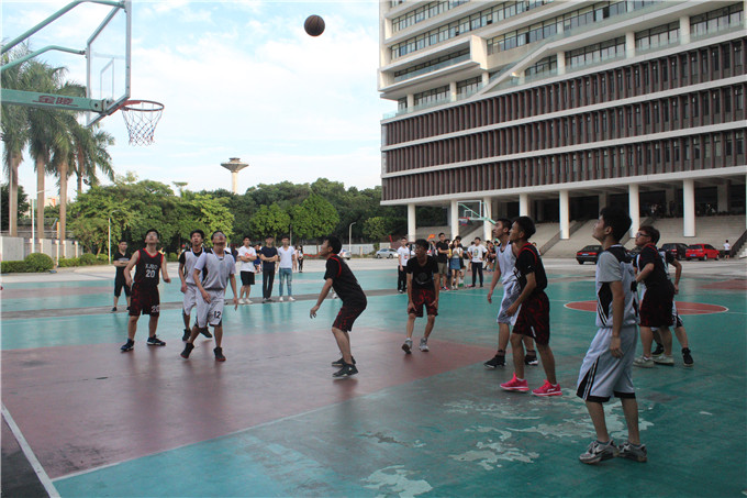 十月的风,透着丝丝凉意,让人不禁打了个寒噤。图书馆前的篮球场却是热闹非凡,一阵阵加油呐喊的助威声让人热血沸腾。球场上,穿着球衣的运动员肆意的奔跑和追逐,为了各自队伍的荣誉竭尽全力。走位,传球,瞄准,投篮,每一个动作都仔细认真的完成。进球时欢呼击掌,失球时握手鼓励,相互帮助相互扶持,把团队精神体现的淋漓尽致。本次比赛还特别加入了女子投篮的项目,俗话说巾帼不让须眉,女生投篮亦是不输于男生。