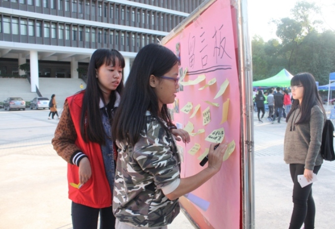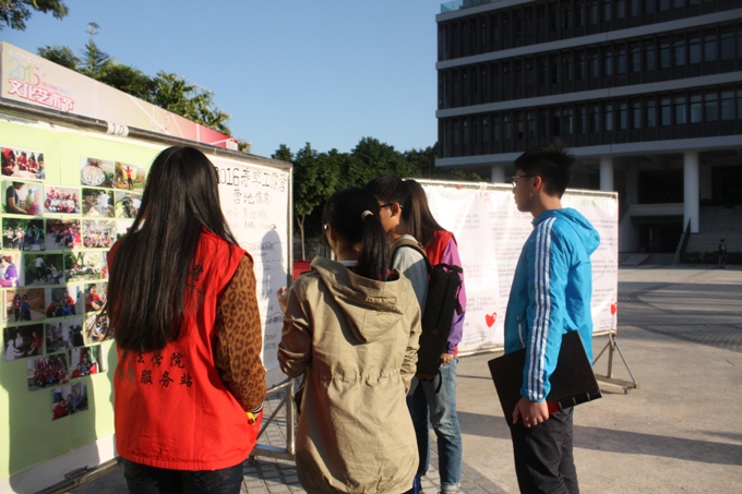 随着中午放学铃声的响起,同学们陆续地经过图书馆前。通过干事们卖力地宣传,许多同学都被图片展吸引了。负责讲解的干事们生动形象地为前来观看图片展的同学一一讲解,部分同学不仅向志愿者咨询相关信息,还在志愿者们的指引下还进行了现场预报名。此外,同学们纷纷在留言板上写下了对麻风病康复者的祝福。经过两个志愿站的干事们的努力下,活动顺利开展并圆满结束。通过图片展是不能完全做到消除社会对麻风病康复者的歧视,因此我们还要用实际行动让康复者们回归社会。