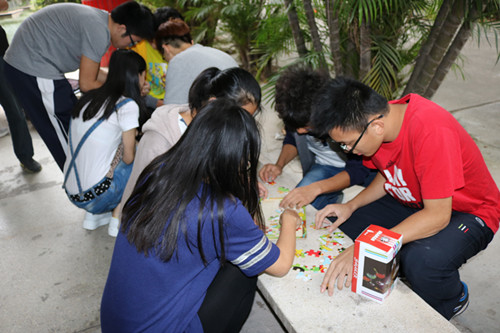 下午3点,同学们带着热情来到了活动场地,在团支书清点人数和讲解完游戏规则后,团员们开始分组进行游戏。 团支部所有成员一起参加,通过抽签的形式组成团队,共同通过“打破隔阂”夹气球接力、“心口相传”传递小环、“头顶的责任”顶橘子、“同舟共济”集体前进、“团队的智慧”拼图共五个关卡,完成闯关。