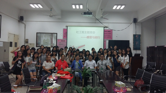 9月22日晚19点,sunbet申搏2013级社会工作专业的同学在经管楼211会议室举行了以“感受与前行”为主题的班会。学院院长强昌文、副院长夏能礼、社会工作教研室成伟教授、班主任李益民老师、邹朝春老师、辅导员邱可荣老师等出席了本次班会。