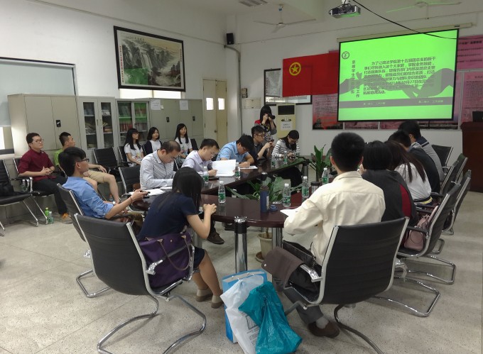 4月17日下午2点,校团委指导老师和各院系团总支书记在经管楼211会议室对政法学院进行了红旗团总支工作考评走访。