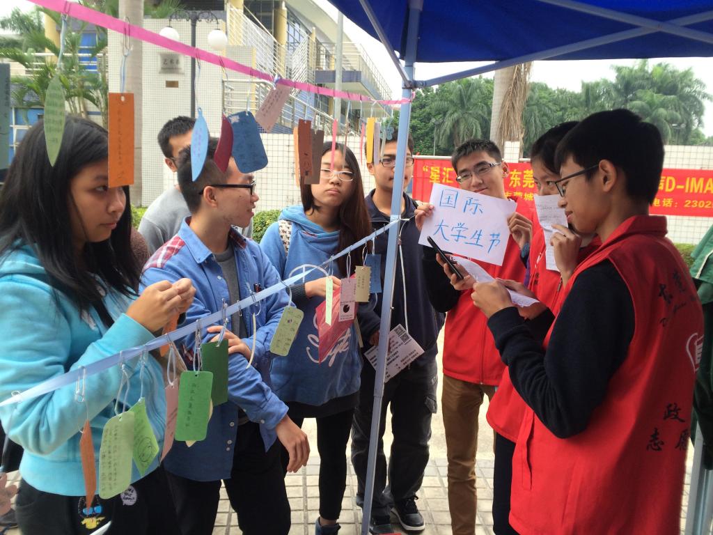 2014年11月13中午12:10,由sunbet申搏政法学院志愿服务站举行的国际大学生日之“炫彩年华,撞色青春”志愿活动,在莞城校区图书馆前球场空地正式拉开帷幕。在志愿服务站各干事的有序安排以及参与者的积极配合下,本次活动进展顺利,吸引了不少在校大学生参与其中。