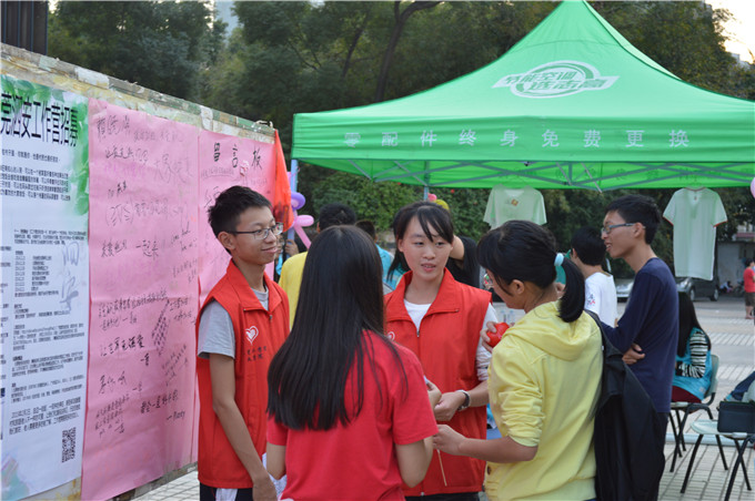 这天,虽然有很多部门都同时进行活动,但是通过干事们卖力地宣传,大量的同学都被图片展所吸引了。当然,负责讲解干事们也不甘示弱,他们凭借着灿烂的笑容和生动的讲解,获得了同学们的连连称赞。负责调动的干事们就更加投入了,整个活动期间他们基本没有休息过,奔波于宣传与讲解处人流之间的调动,这保证了整个活动流程的顺畅自如。干事们的努力也得到了欣慰的回报,几张报名表都被填的满满的。虽然这天我们吸引了很多同学报名,但我们相信,这还是不够的,家工作营招募工作仍在继续。
