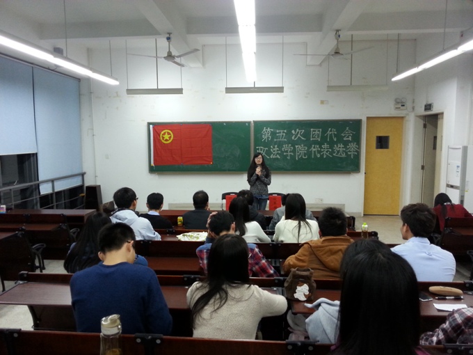 会议伊始,主持人邢鸿鑫宣布到场人员和宣读选举规则:政法学院松山湖各团支部各占一票,团总支书记团及各部门部长持有一票,共选出13名代表。接着,各参选代表上台发表竞选宣言,在各竞选代表的发言中,可以看出各团员对团员身份的一种尊重,十分希望能够代表政法学院参加第五次共青团代表会议,充分体现了自身的荣誉感。接下来,就是紧张的点票环节,经过工作人员的再三核对,最终确定参加共青团代表大会的代表名单,他们分别是:刘裕颖、袁智勋、叶创新、潘才彬、李春志、罗雪芳、蔡志炜、李堪鑫、李乐怡、刘炜洁、邢鸿鑫、杨国桃和叶炜森,希望这13名代表能够贡献自己的力量,建言献策,为政法学院争光。
