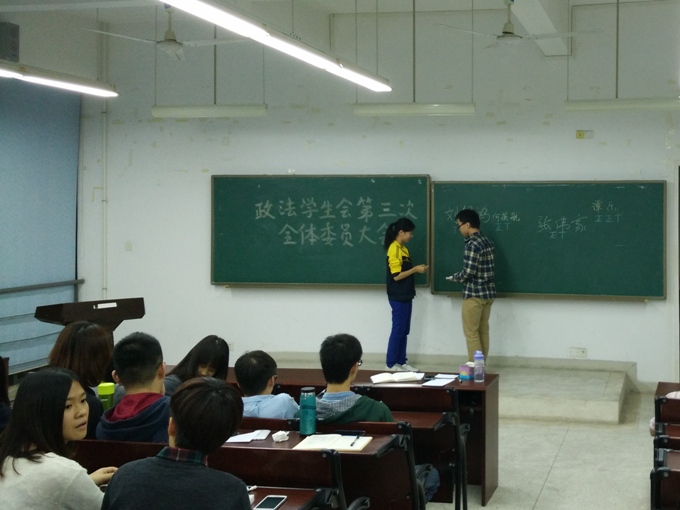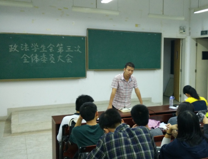 11月3日21点30分,政法学生会第三次全体委员大会在经管楼211举行。此次会议依旧由学生会主席叶创新主持。