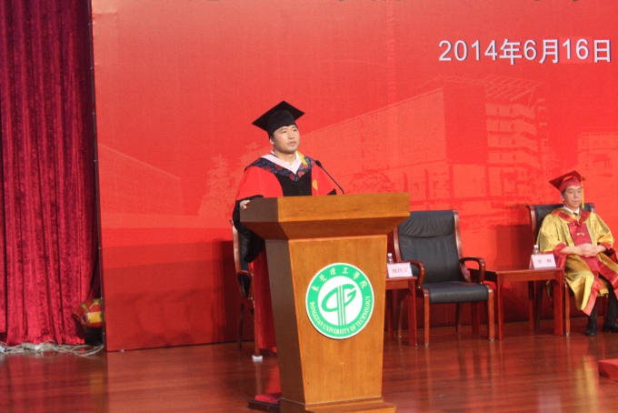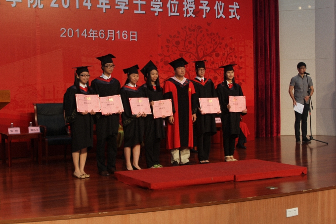 仪式由副院长邹琼主持,仪式一开始,政法学院院长强昌文作了热情的致辞。强院长指出,毕业季并不代表结束,政法学子在日后的生活应该继续学习,不断进步,为社会贡献自己的力量,最后强院长表达了对毕业学子的美好祝愿。接着,政法学院辅导员邓磊老师宣布政法学院2014年“优秀毕业生”的名单,强昌文为获奖者颁奖并合影留念。