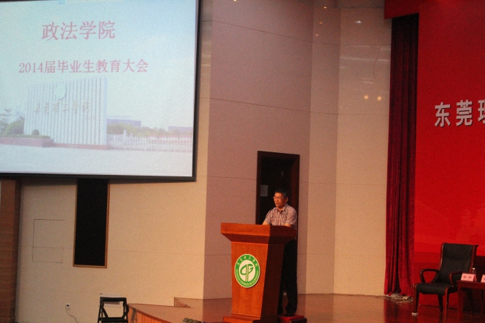 最后,政法学院为到场的毕业生举行了2014年毕业生教育大会,政法学院党总支书记潘荣新用自己的经历为同学们上了大学的最后一场课。潘荣新老师总结了自己的学习和生活经历,针对同学们未来即将遇到的问题或者其他的任何事情,最重要的要以坦然处之。好的心态对一个人的未来有着极其重要的影响,所以坦然接受,并积极寻找解决方法才是好的选择。