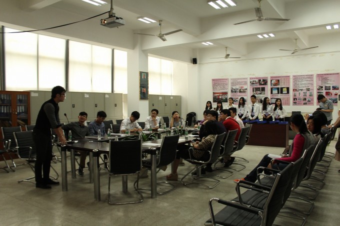 本次考评走访会议首先由政法学院团总支书记邓磊作团总支演讲解说。邓磊书记先是对指导老师和各位团总支书记的到来表示热烈的欢迎,接着对政法学院团总支的内部机构和活动宗旨等进行介绍,随后还详细列举了政法学院团总支在2013-2014学年度进行的各种团日活动、特色院系活动、志愿活动、法律宣传等。最后,邓磊书记对政法学院未来的发展方向和准备工作进行了简单的阐述,同时他也表示希望能加强政法学院与其他院院系的沟通与合作。然后团员代表肖映冰对走访考评材料作了详细介绍,校团委指导老师和各院系团总支翻阅了考评材料并对准备材料的工作人员提出了建议。