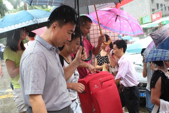 院长徐波教授亲自为新生撑伞避雨